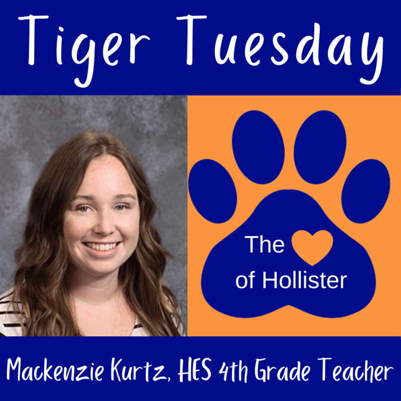 Miss Kurtz is a 4th grade teacher at Hollister Elementary School. She has taught in Hollister for 3 years. Before joining the Hollister Tiger family, Miss Kurtz taught 4th grade in the Smithville School District for 2 years. Always smiling herself, Miss Kurtz shares that what she loves most about her job is having the opportunity to see her students smile every day. She also loves that she gets to see her students grow academically. Being a part of a supportive community is important to Miss Kurtz and is why she loves Hollister.