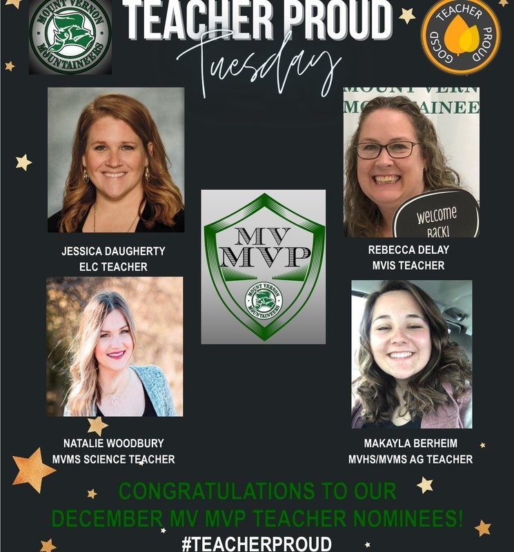 We are so proud to recognize these four outstanding teachers who were our building nominees for the MV MVP award for the month of December. They were nominated by their peers and go the extra mile to make it a great day to be a Mt'Neer!