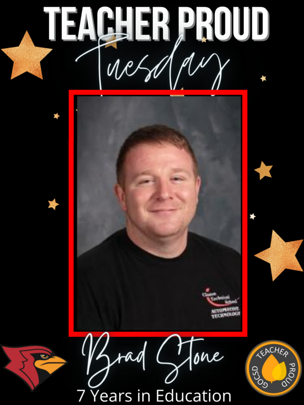 IT'S TEACHER PROUD TUESDAY! The Clinton School District is excited to join other school districts across the region in celebrating teachers on the 2nd Tuesday of each month. This month, we celebrate and recognize the outstanding work of Clinton Technical School Automotive Technology teacher, Brad Stone. Mr. Stone has been an educator for the past 7 years and continually lives out the values of the Clinton School District. Brad is known for his ability to develop strong relationships with his students, colleagues, and the community. He communicates effectively with students, staff, parents, and stakeholders. Brad works hard to ensure his students leave his program with the skills they need to continue their education or enter into the automotive industry. His students regularly excel in SkillsUSA competitions at the district, state, and national level. Brad is constantly revamping his curriculum, staying abreast of the latest in technology, techniques, and innovations, and works hard to keep his instruction timely and relevant. Brad is a team player and is always quick to jump in and help a student or colleague. We are so glad to have Mr. Stone on our team and today on #TeacherProudTuesday, we celebrate him and the positive difference he is making in our district and in the lives of our Cardinals.