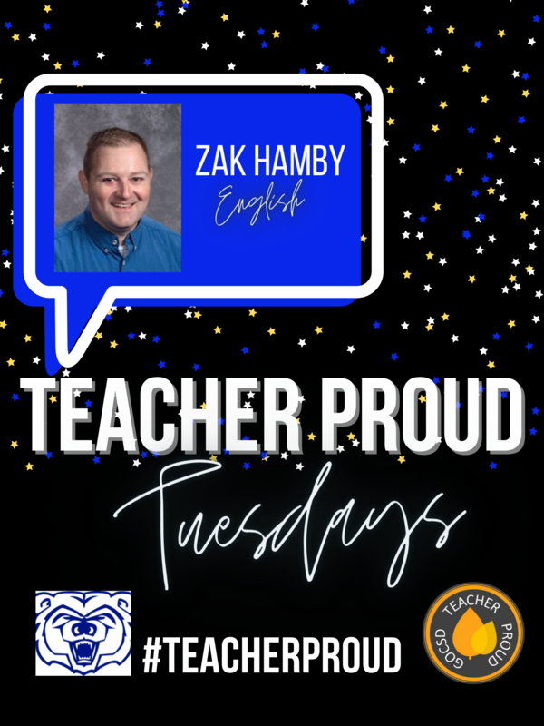 We love that Mr. Hamby writes his own script stories and uses them in his classroom. He challenges students and creates interdisciplinary lessons. Learning always comes alive in his classroom. One of his Senior English students said, "I love Mr. Hamby's class. I always leave his classroom knowing more than when I entered. He makes learning fun."