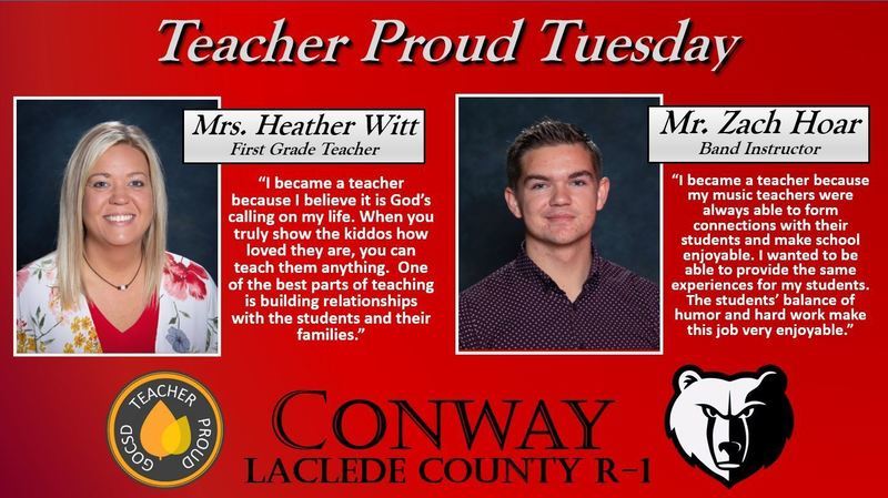 For January's Teacher Proud Tuesday we are spotlighting the Conway Laclede County, Fordland, Hollister, and Joel E Barber Laclede County C-5 School Districts.